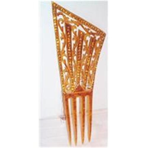 <tr><td>Title:Amber Color Rhinestone Tall Vintage Hair Comb</td></tr>