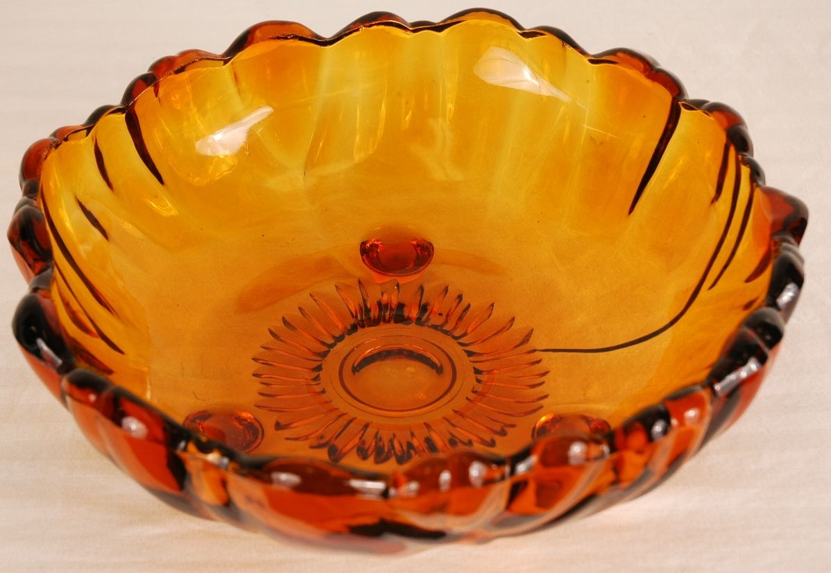 Beautiful amber glass bowl. 4"H. No chips or cracks.