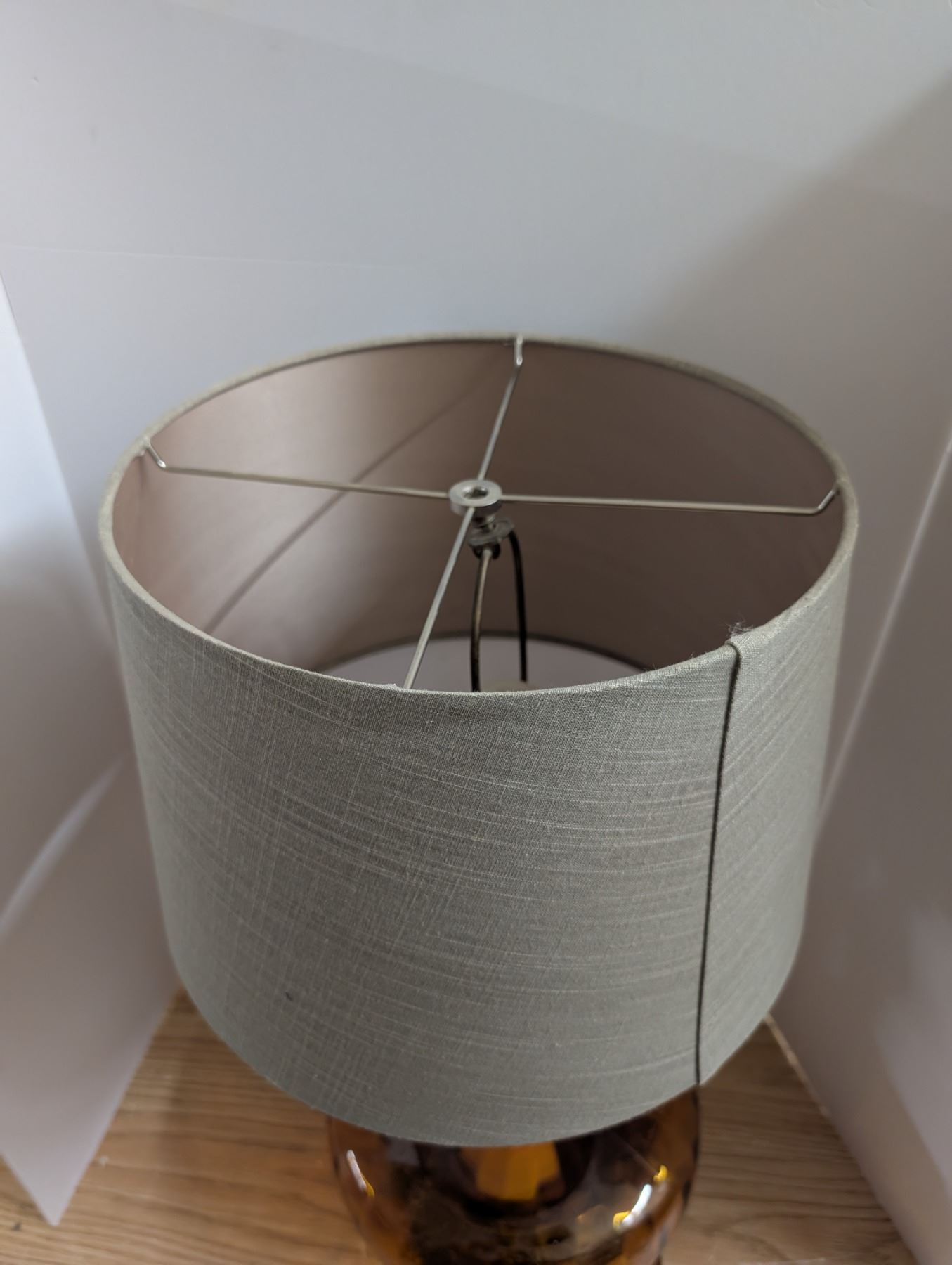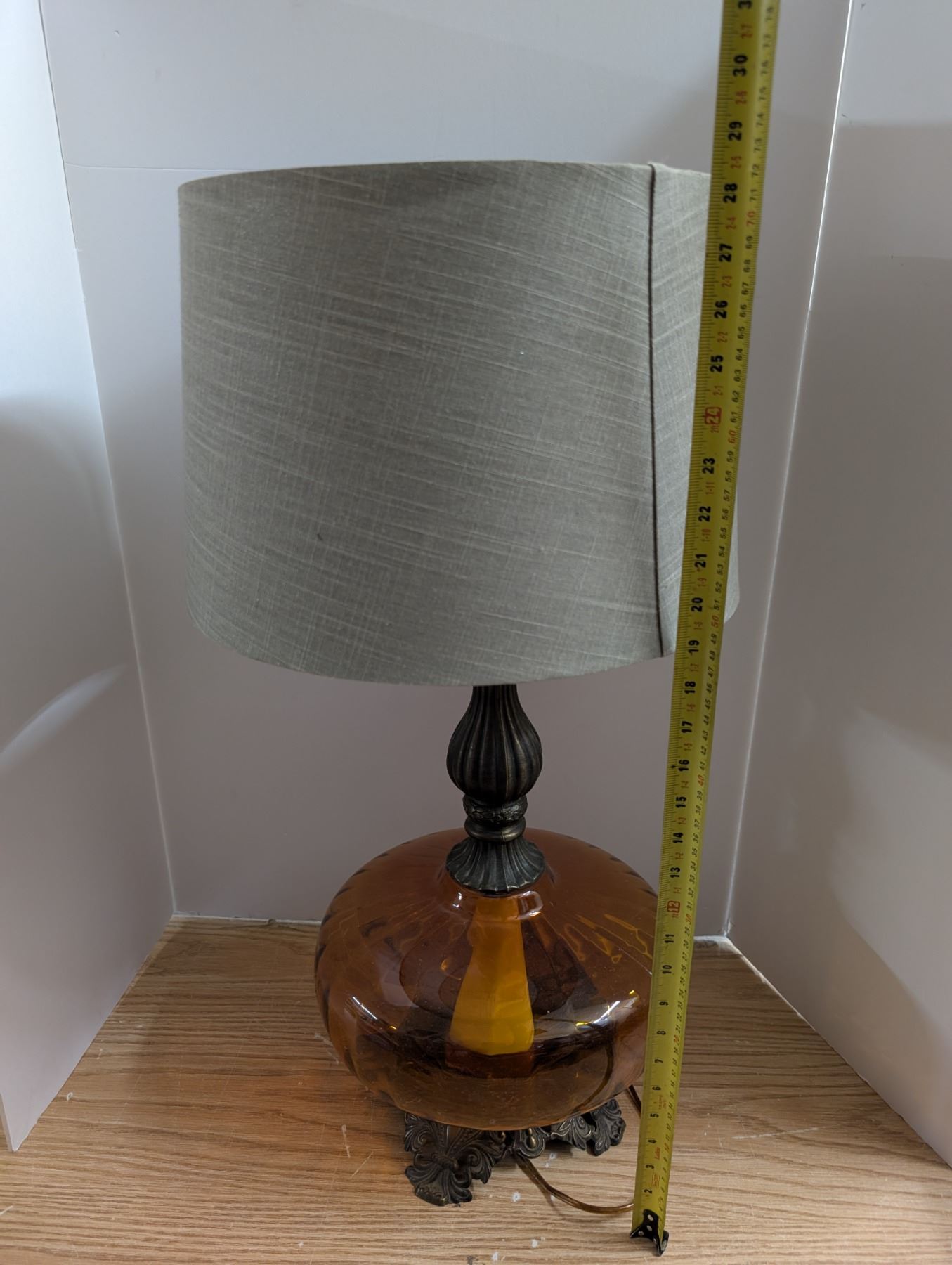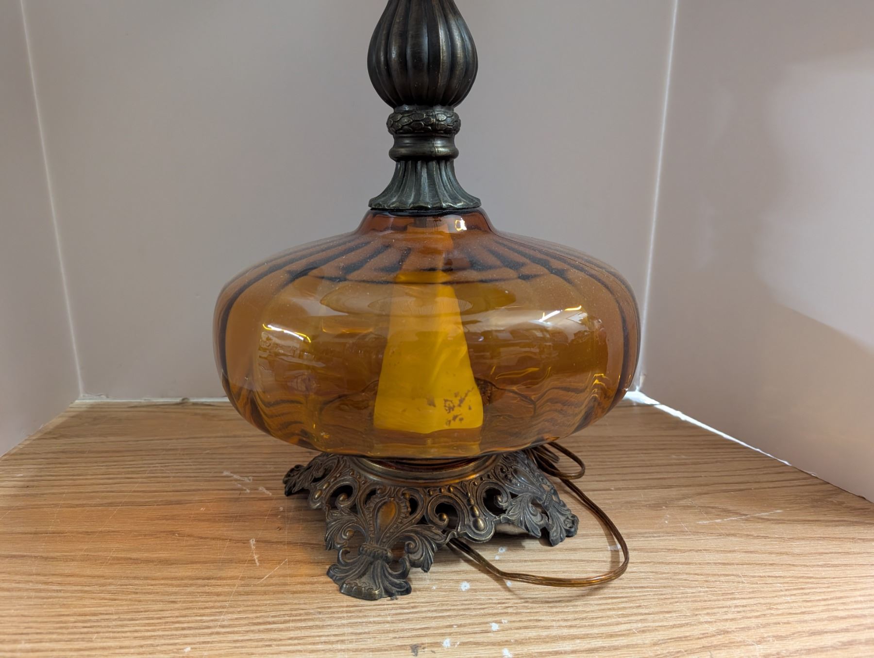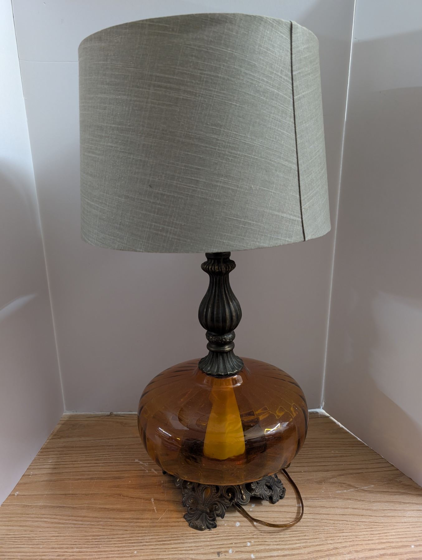 Amber Colour Glass Base Lamp w/ Shade (not Tested)