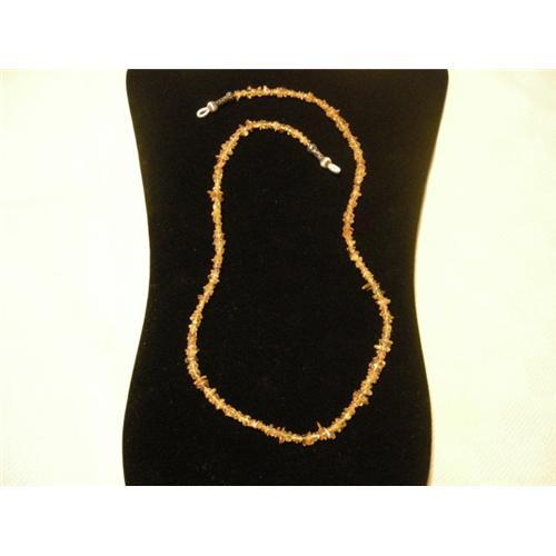 This elegant eyeglass keeper is in mint/ never-worn condition. The chain is made up entirely of real amber stones. The loops to insert the glasses are in perfect condition.