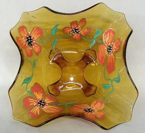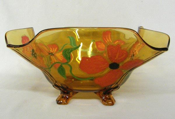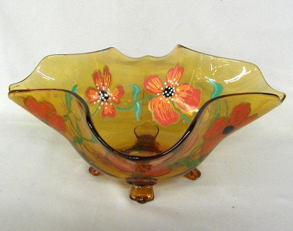 Amber Glass Bowl Handpainted by Kills Thunder. Bowl measures approx. 5.5''Hx12''W. Buyers Pay Actual Shipping and Handling Charges(see terms and conditions for more information).