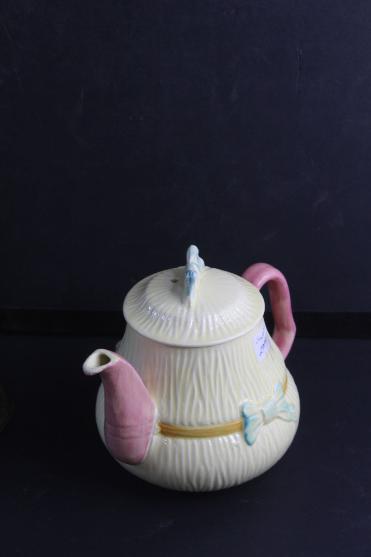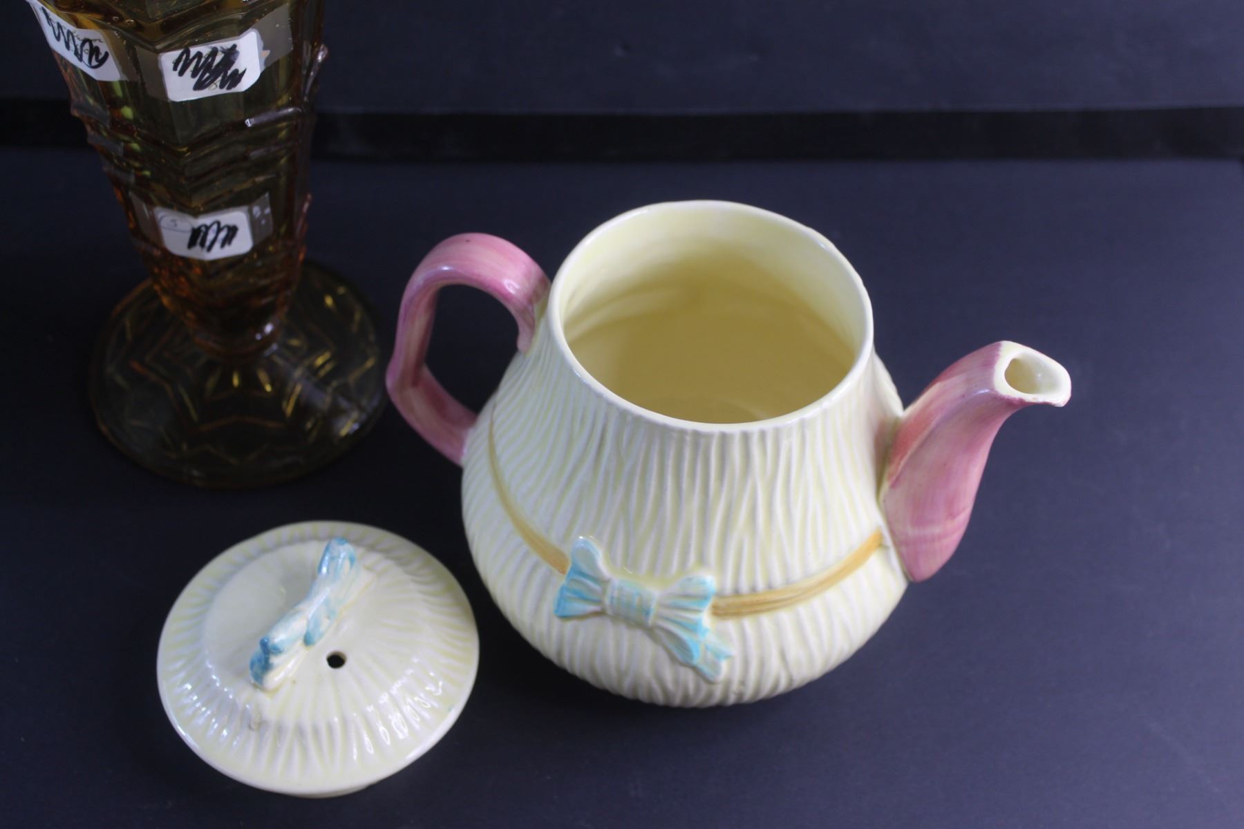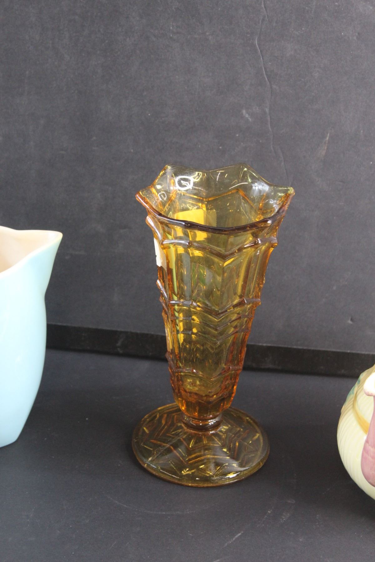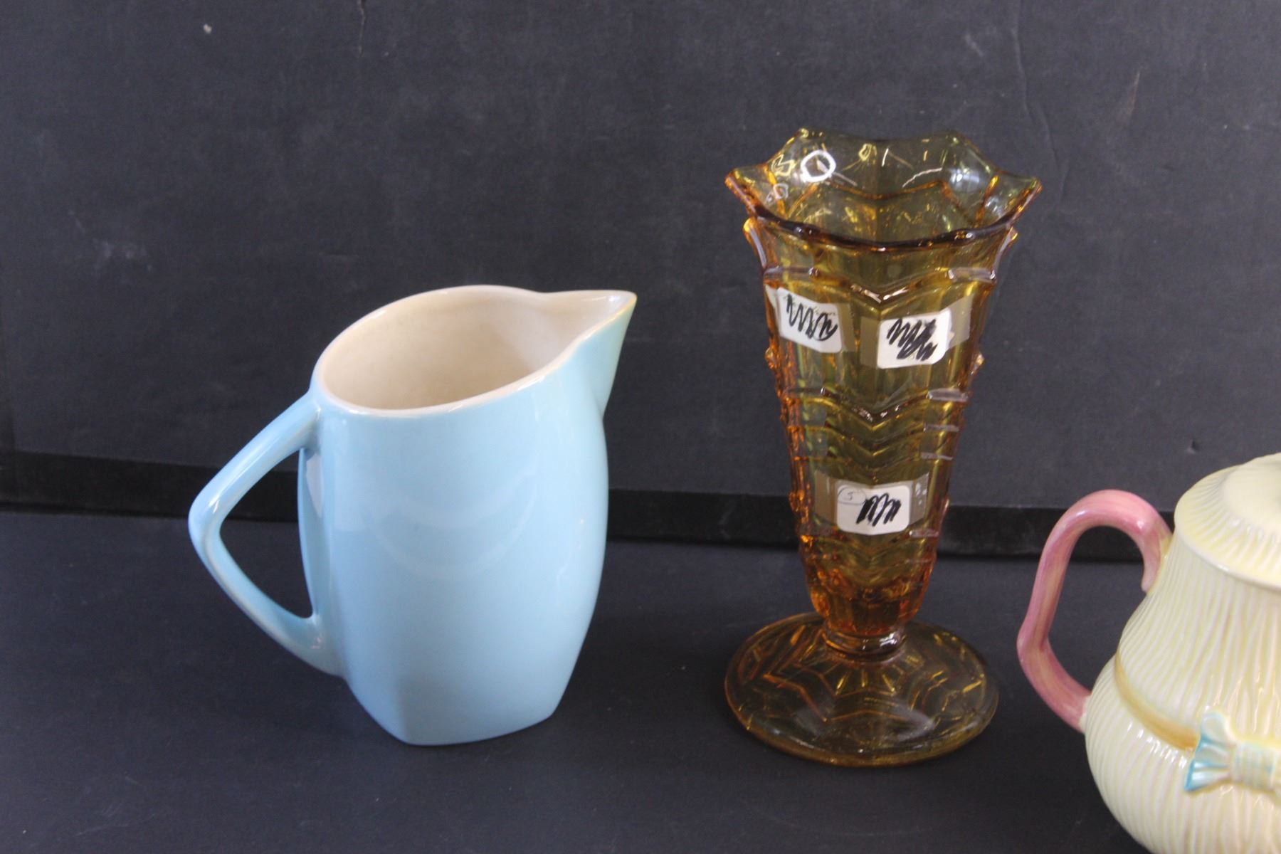 Amber Glass Vase, Ceramic Pitcher and a Tea Pot