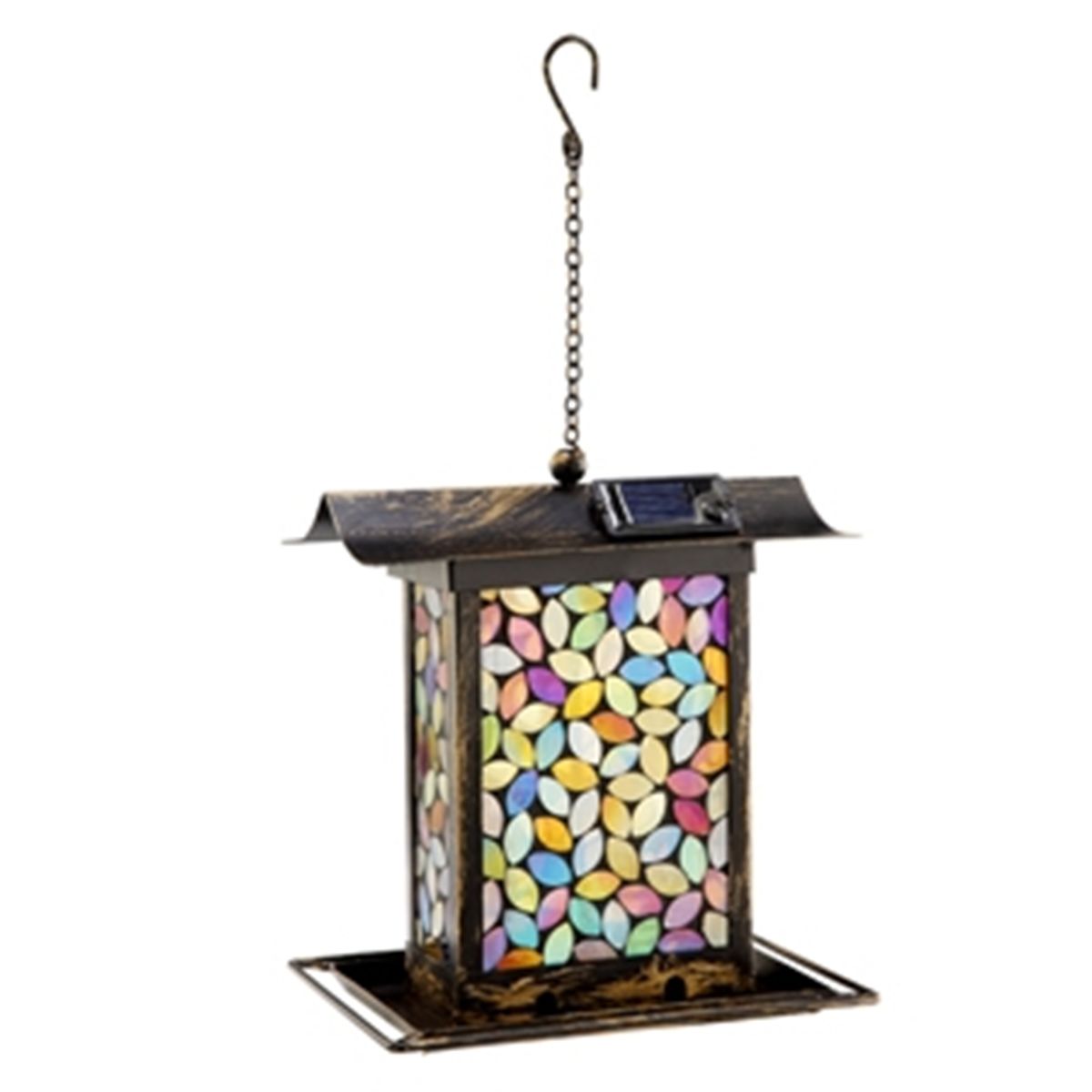Amber Mosaic Glass Birdfeeder - 10" X 9" X 6" - Iron, Glass & Sheet Metal