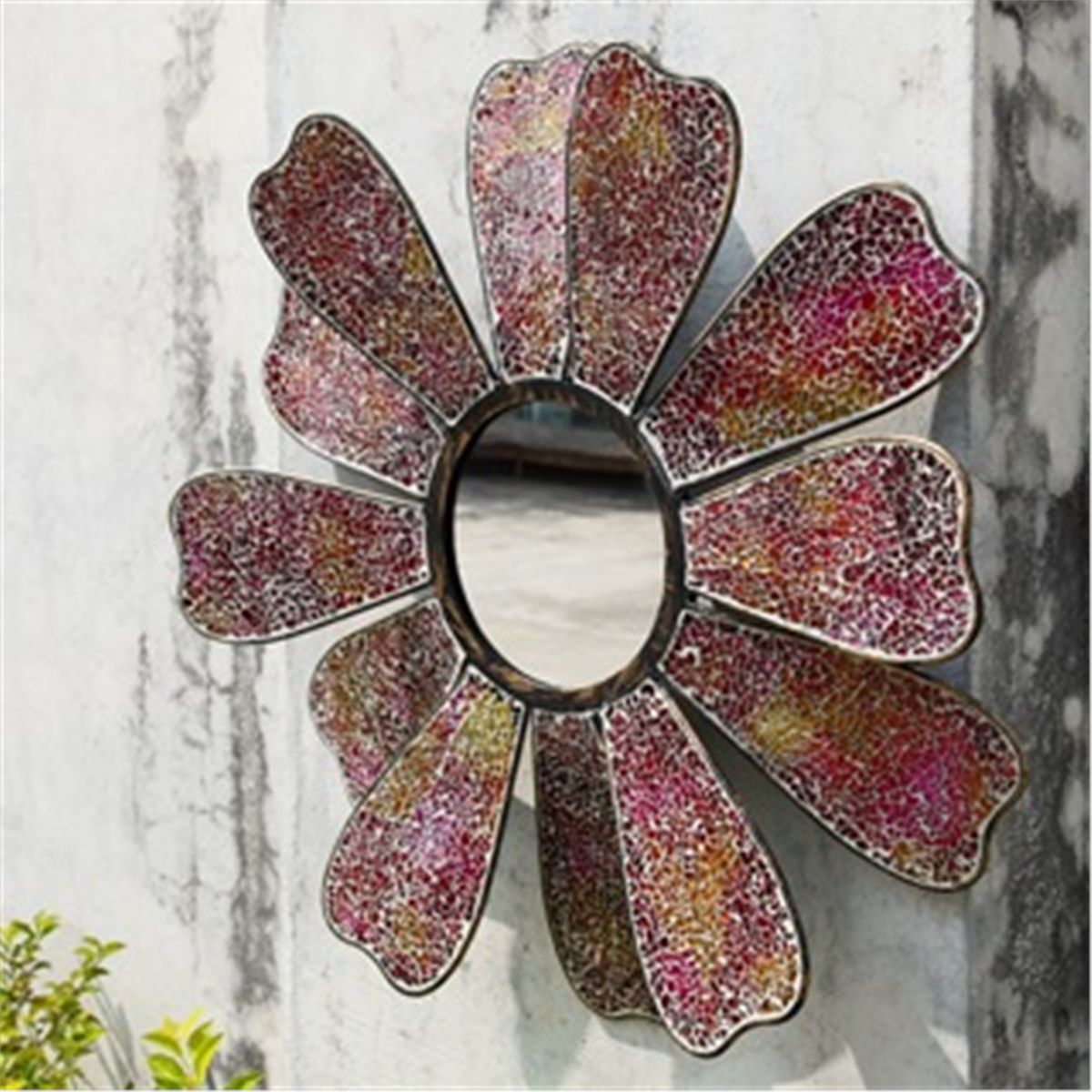 Amber Mosaic Glass Flower Mirror - 20.5" X 20.5" X 3" - Iron, Glass & Sheet Metal