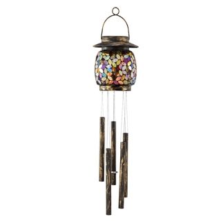 Amber Mosaic Glass Windchime - 28" X 6.5" X 6.5" - Iron, Glass & Sheet Metal