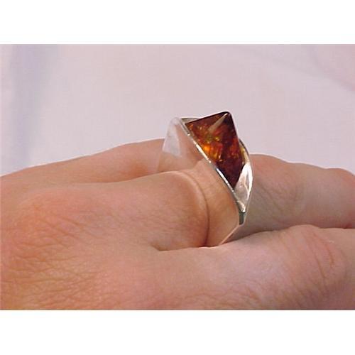 <tr><td>Title:Amber Pyramid & Sterling Ultra Modernist Ring </td></tr>