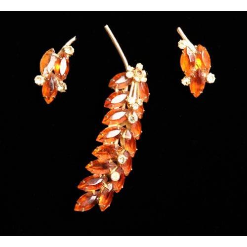 <tr><td>Title:Amber Rhinestone Fern Brooch/ with earings</td></tr>