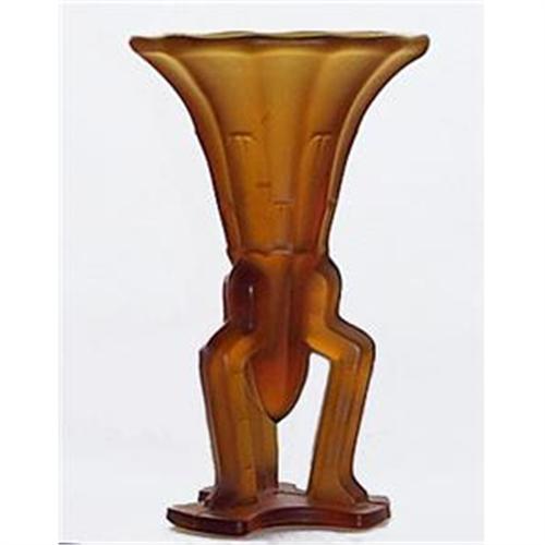 <tr><td>Title:Amber Satin Glass Art Deco Rocket Vase</td></tr>