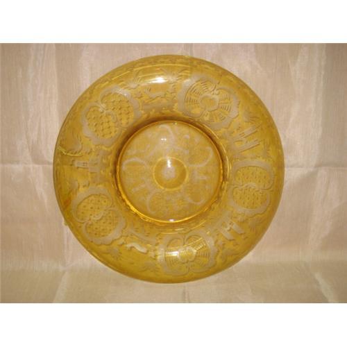 We are offering this round Amber color Bohemian Etched glass Center piece in excellent condition.