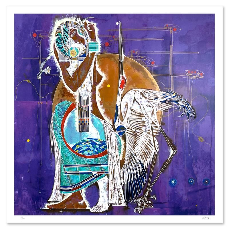 Ambiguity by Hong, Lu. All available information is listed in the description and shown in the photo. "Ambiguity" is a limited edition serigraph on paper by Lu Hong, numbered 40/140 and hand signed by the artist. Includes Letter of Authenticity. Measures approx. 36" x 36" (border), 33" x 32" (image). ** Please note: there is a faint hairline diagonal scratch on the top-right part of the image and minor imperfections in the white border area (very small tear and minor smudging) that may be cropped when the piece is framed. **