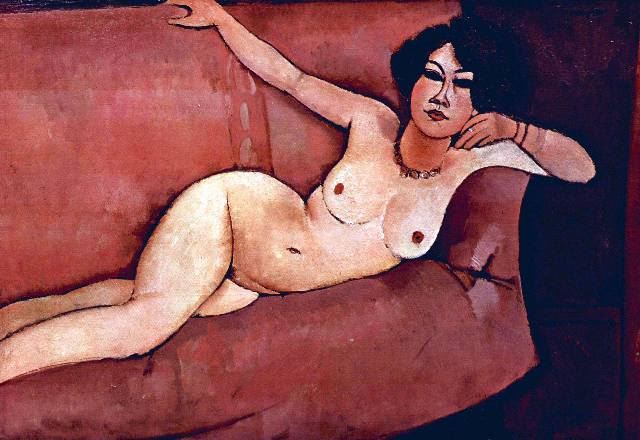 Artist : Amedeo Modigliani - Title: Act on a Sofa (Almaiisa) - Medium: Fine Art Reproduction Giclee on Canvas - Image Size: Approximately 13.75 inches x 20 inches - Unframed on Unstretched Canvas - Biography: Amedeo Clemente Modigliani was an Italian painter and sculptor who worked mainly in France. He is known for portraits and nudes in a modern style characterized by a surreal elongation of faces, necks, and figures that were not received well during his lifetime, but later became much sought-after.