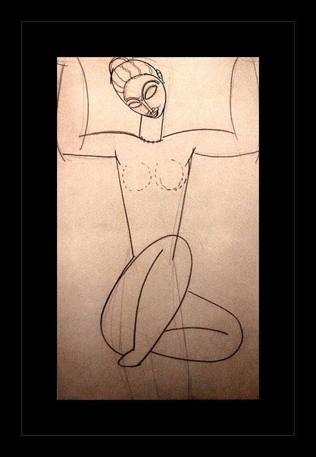 Erotic sketch lithograph by Amedeo Modigliani. Comes gallery framed black on black.