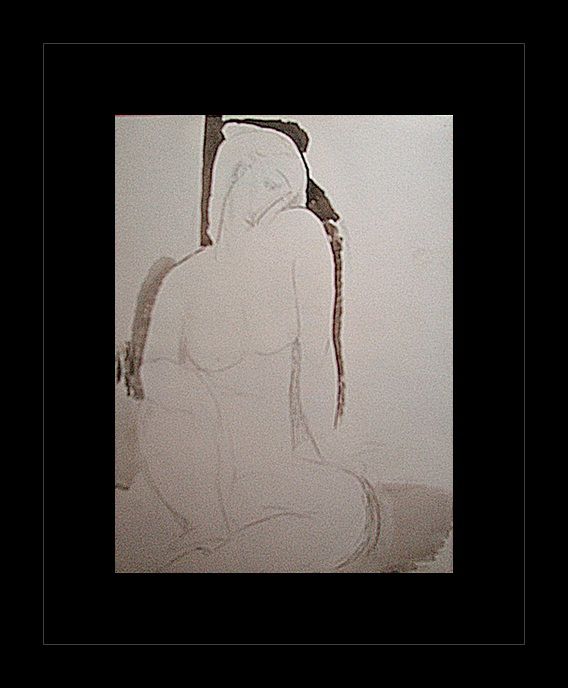 Erotic sketch lithograph by Amedeo Modigliani. Comes gallery framed black on black.