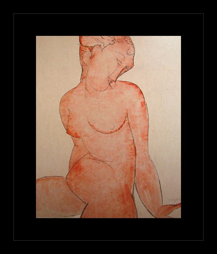 Erotic sketch lithograph by Amedeo Modigliani. Comes gallery framed black on black.
