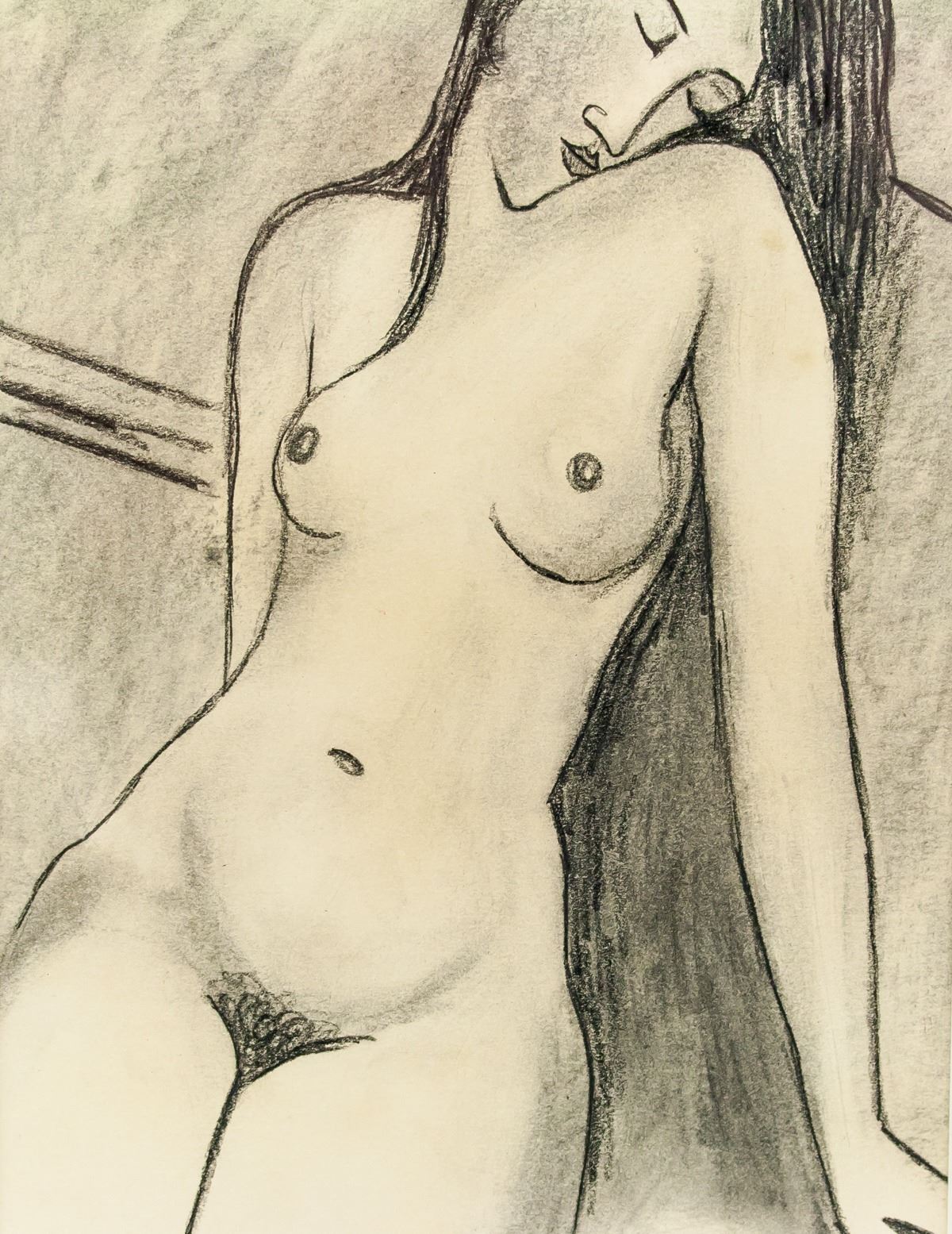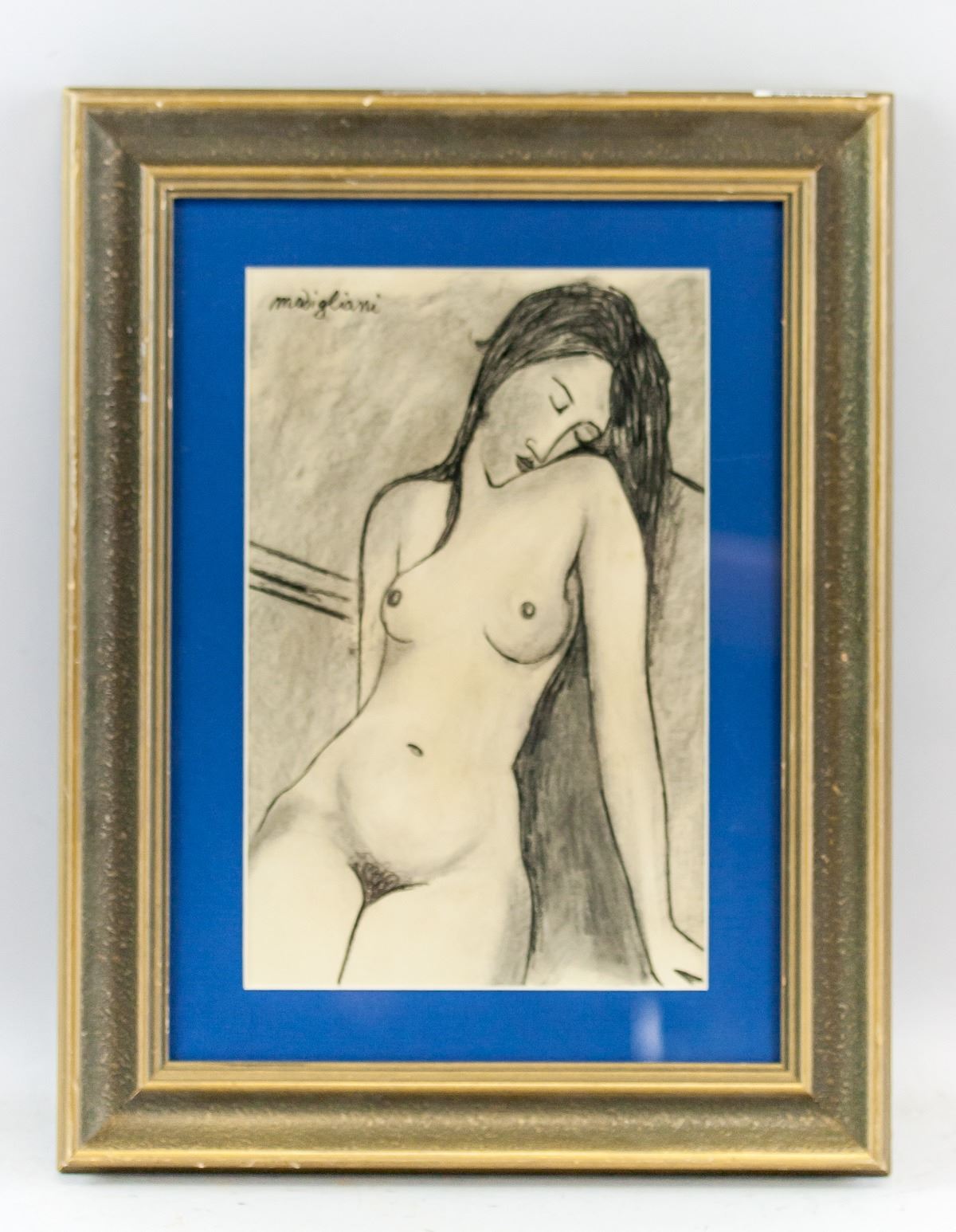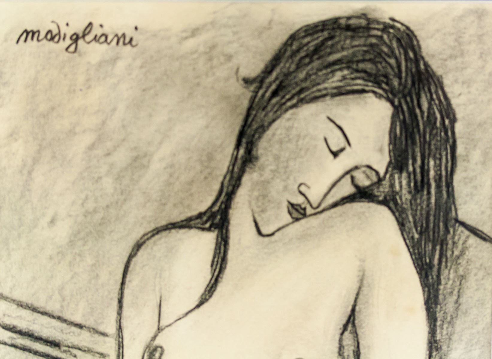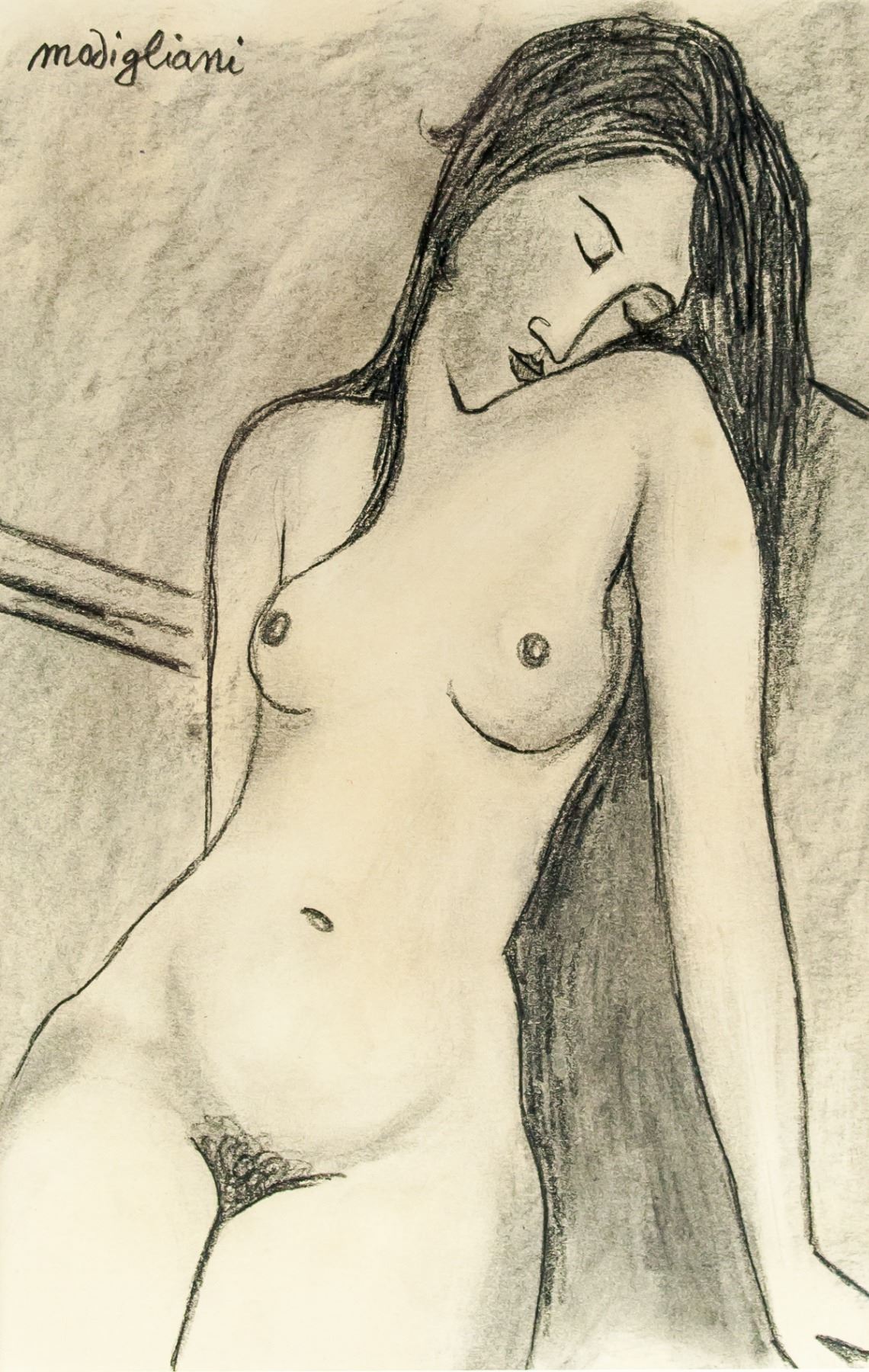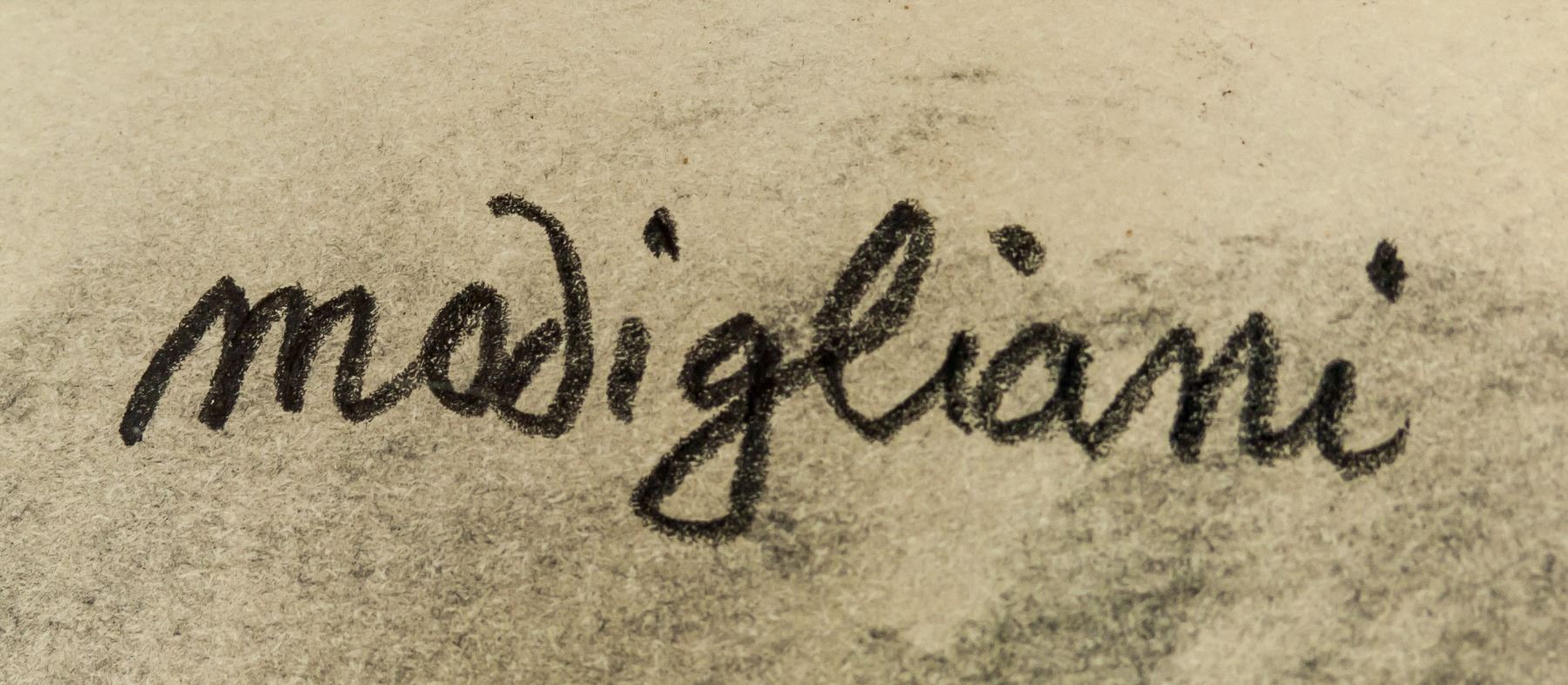Charcoal on paper, framed sketch. Signed modigliani on the upper left corner. Attributed to Amedeo Modigliani (1884-1920, Italian). 28 x 18 cm (11.0 x 7.1 inches). Frame size: 43 x 33 cm (16.9 x 13.0 inches). PROVENANCE: Southern Ontario estate