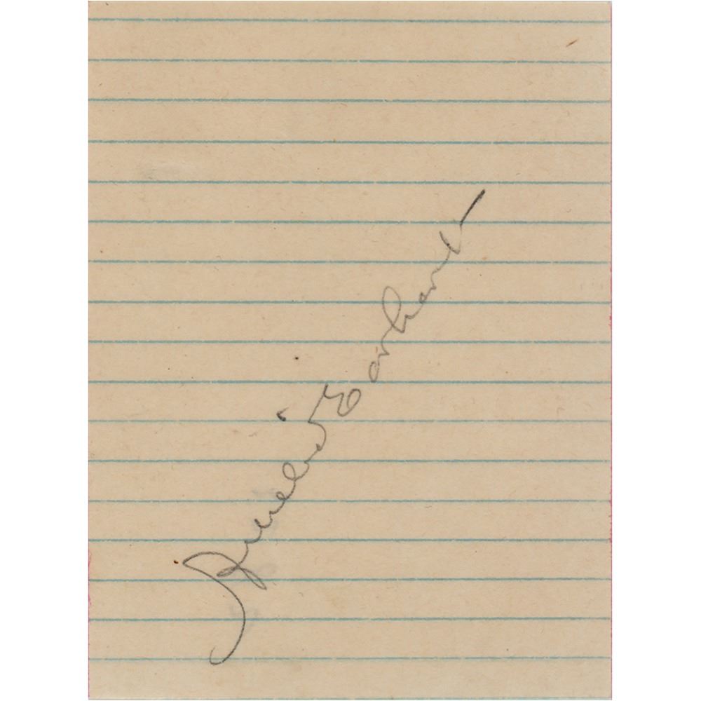 Vintage pencil signature, "Amelia Earhart," on an off-white 3.25 x 2.5 sheet clipped from a notebook page. In fine condition.