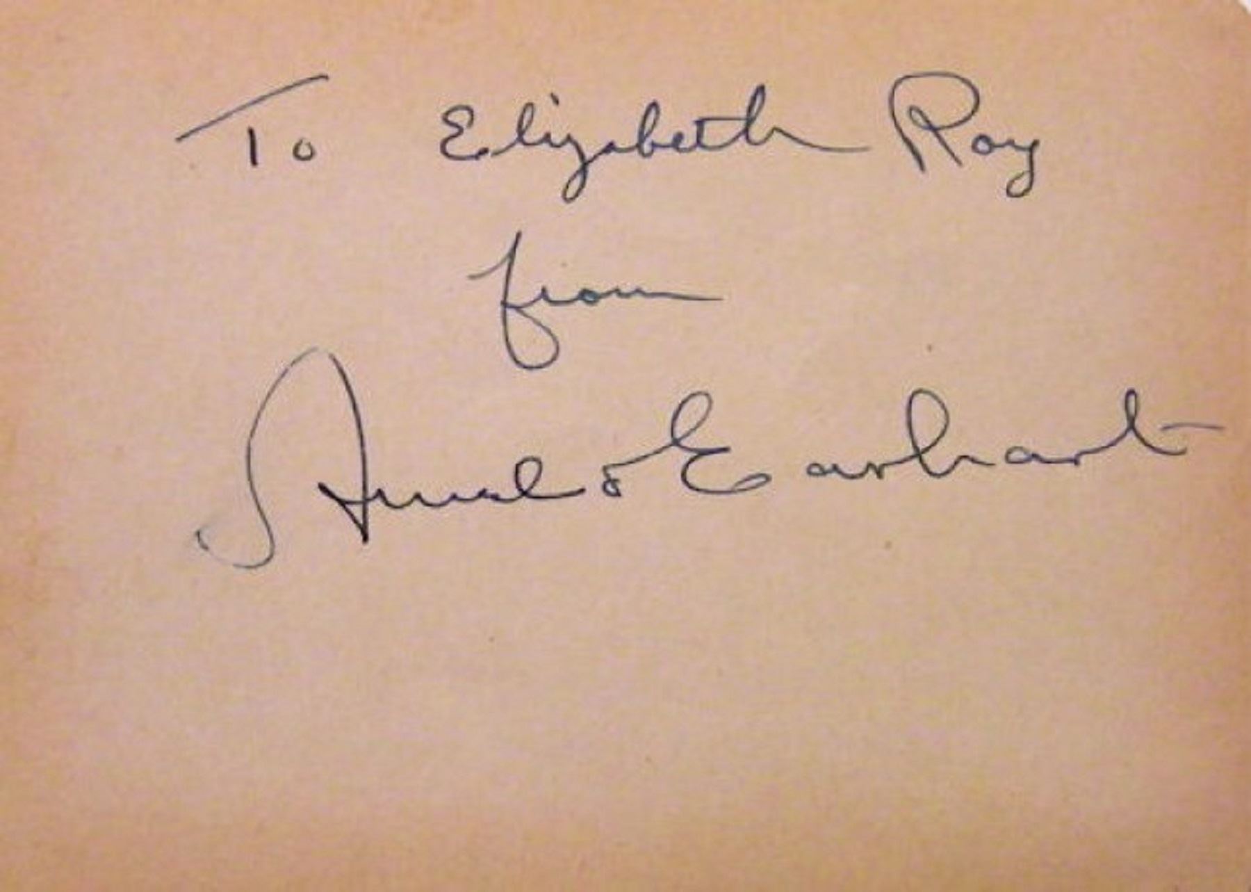 6 in. by 4 in. slip autographed by Amelia Earhart as: To Elizabeth Ray From Amelia Earhart.