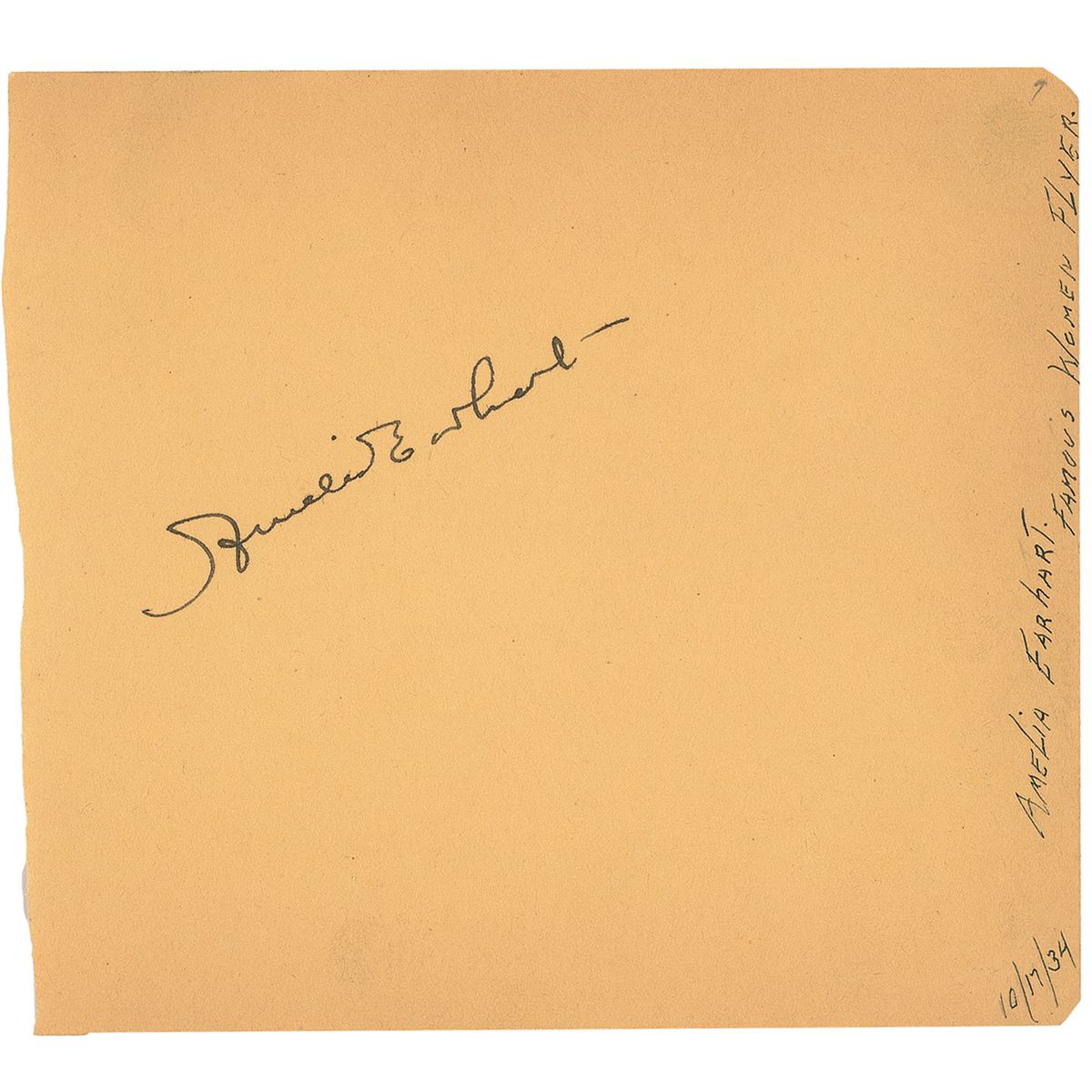 Pristine vintage ink signature on a yellow 5 x 4.5 album page. In fine condition, with a collector’s notation along the right edge.