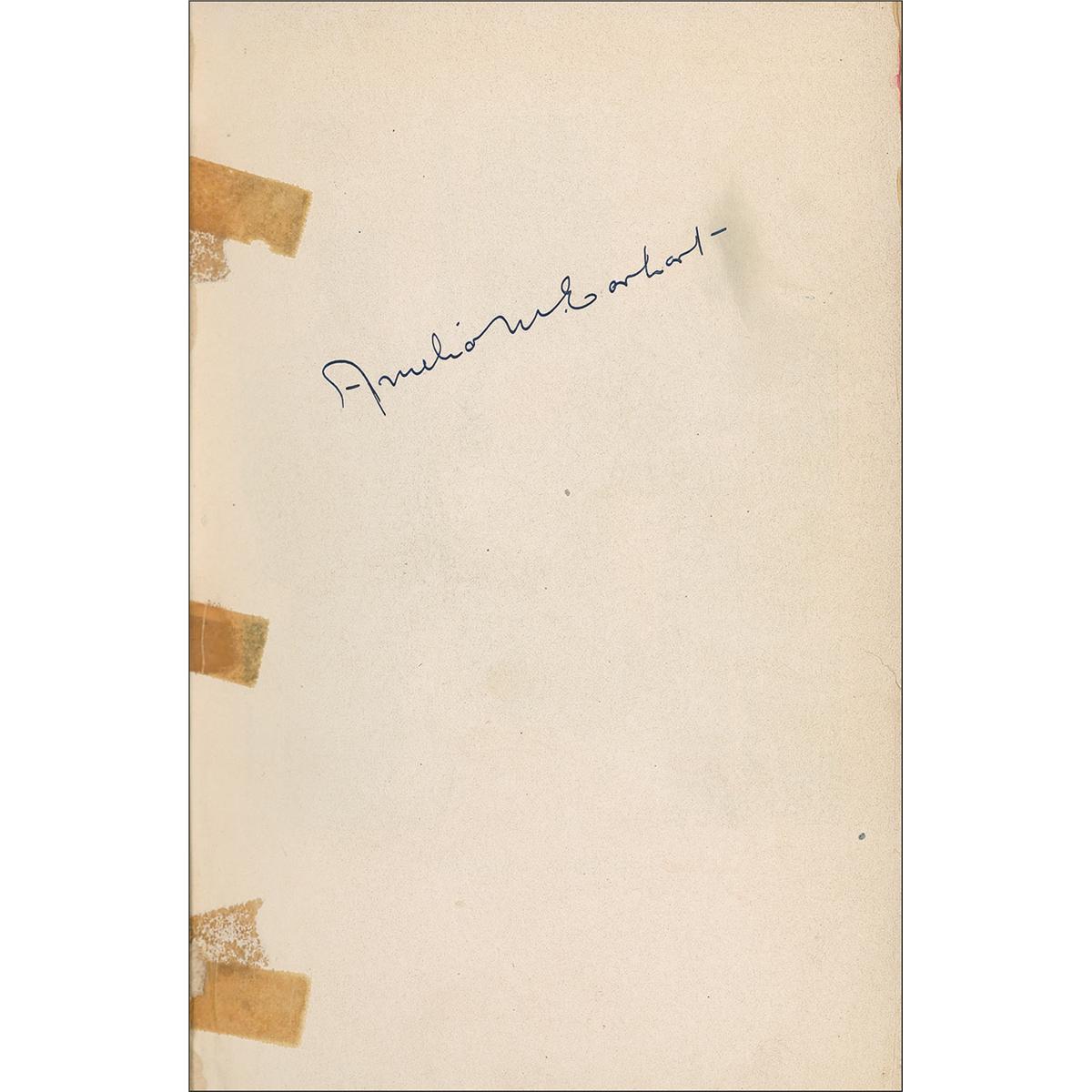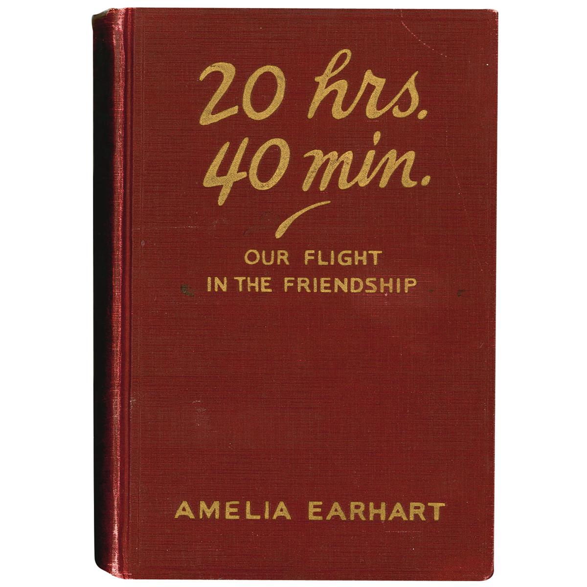 Signed book: 20 hrs, 40 min. Our Flight in the Friendship. Later printing. New York: G.P. Putnam’s Sons, 1928. Hardcover, 5.75 x 8.25, 814 pages. Signed on the second free end page in fountain pen. In very good condition, with some creasing, small edge tears, and tape toning to signed page, small smudge to the very end of the signature, mild toning to inside pages, a few dings and creases to fore-edges, some scattered light wear to covers, and moderate spiling and rubbing to the spine.