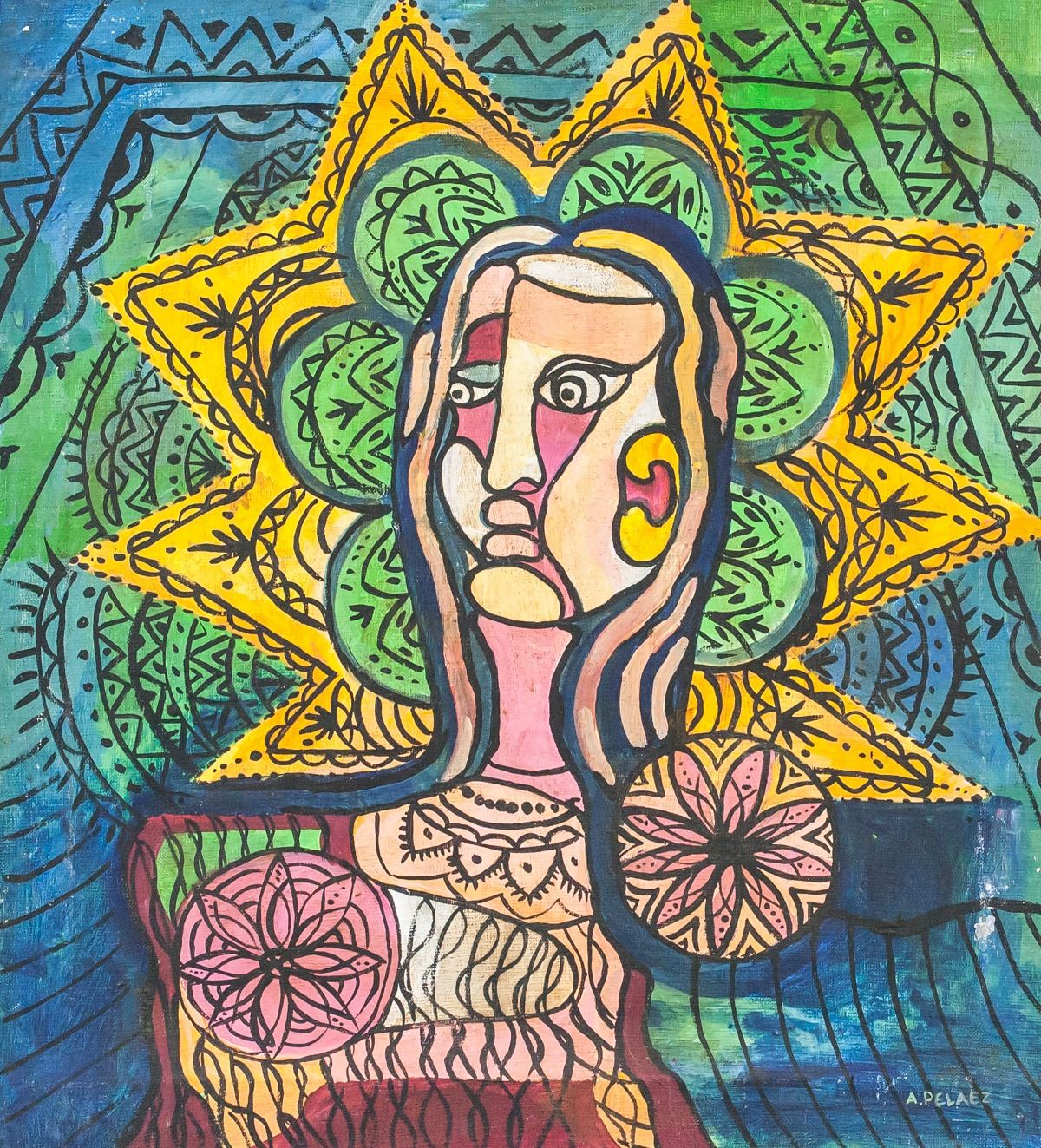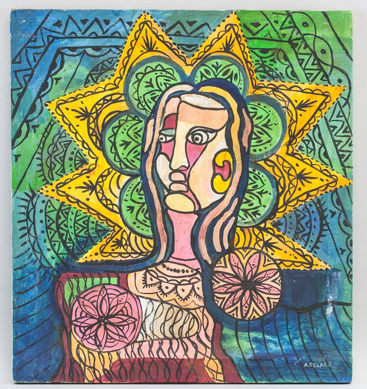 Oil on canvas, stretched. Featuring a portrait of a woman. Signed A. PELAEZ on the lower right corner. Stamped on verso. Attributed to Amelia Pelaez (1896-1968, Cuban). 54 x 50 cm (21.25 x 19.5 inches). Provenance: This lot carries limited provenance from an Italian estate
