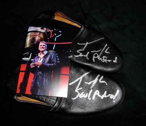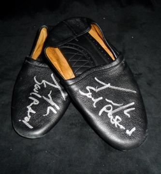 American Idol winner Taylor Hicks - Leather lounging shoes signed on each with Soul Patrol. Also includes a 5 x 7 photos of Taylor