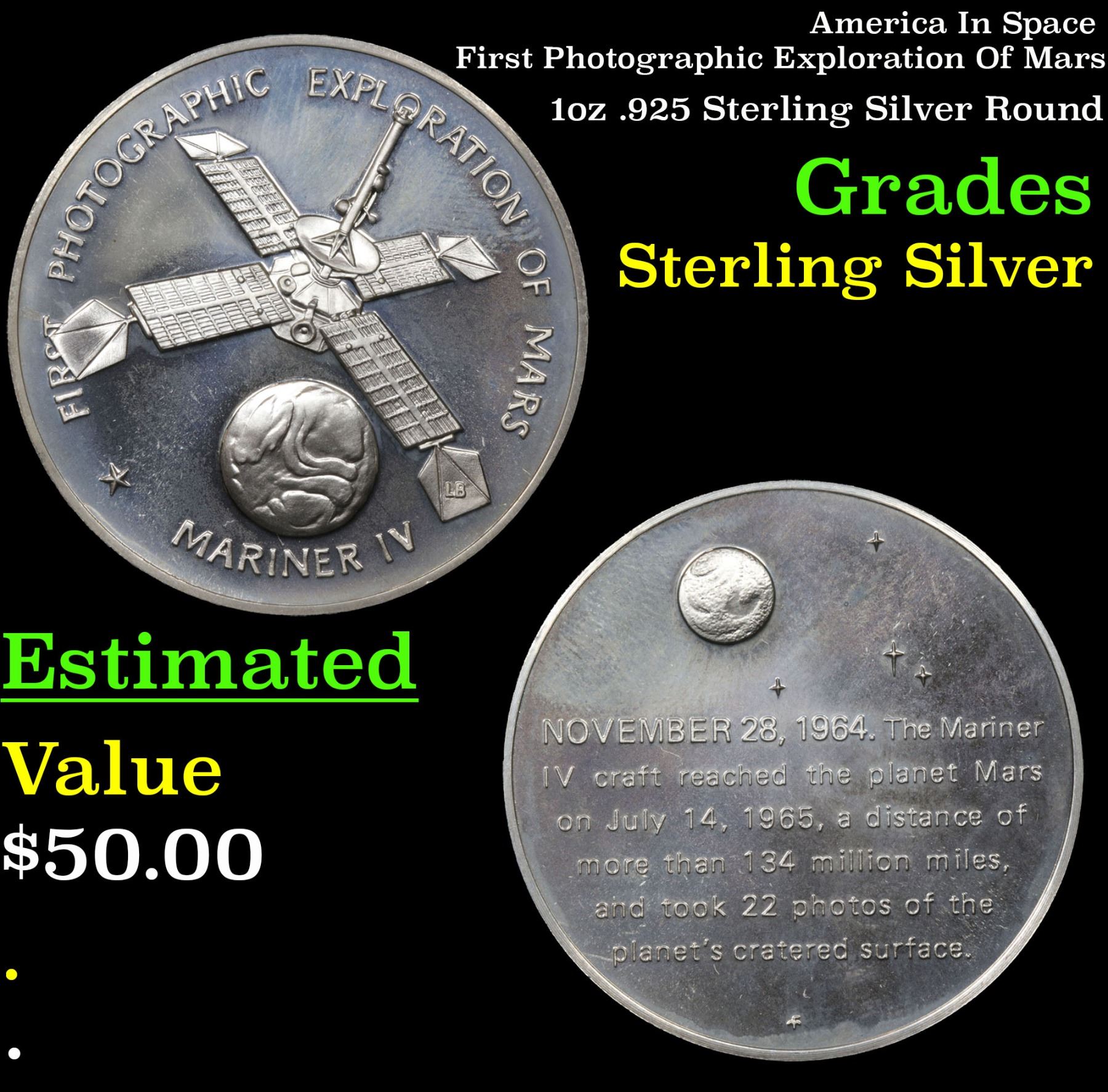 America In Space First Photographic Exploration Of Mars 1oz .925 Sterling Silver Round