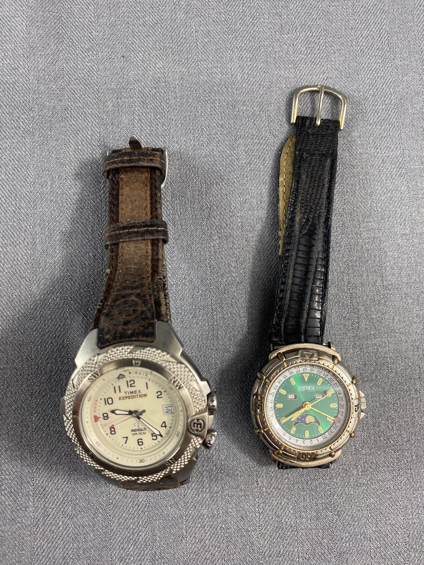 America Perry Ellis Moon Dial & Timex Expedition Indiglo Quartz Watches. Battery Required