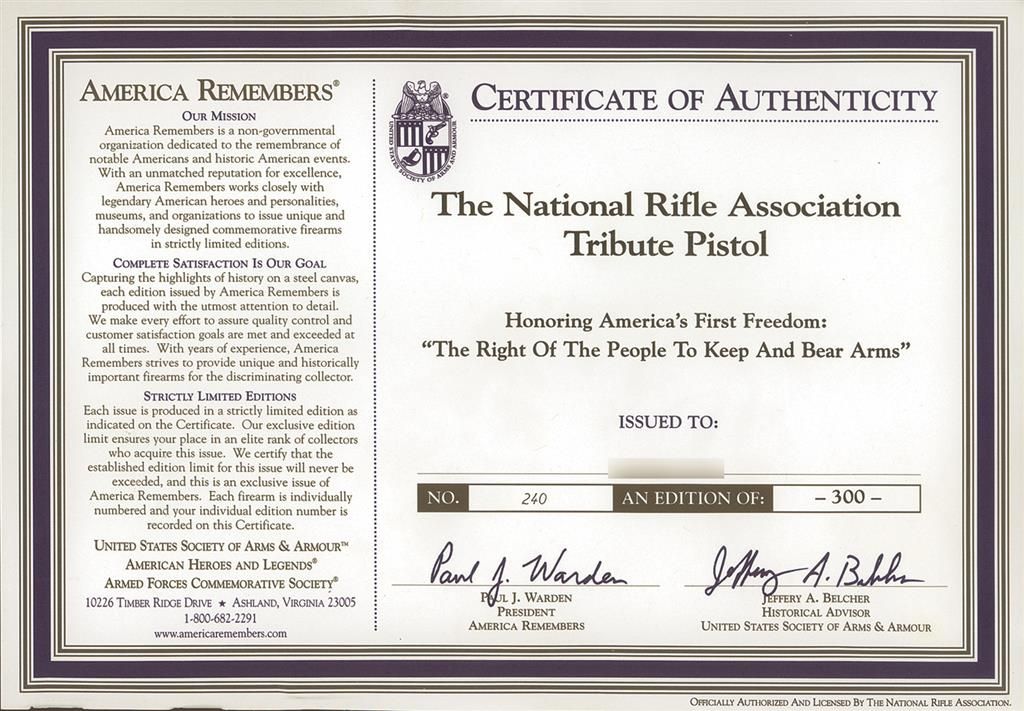 America Remembers Colt 1911 NRA Tribute Semi-Automatic Pistol with Case