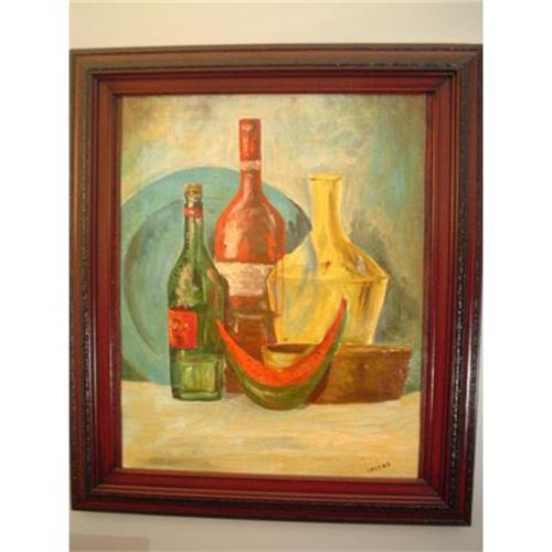 Blanche Lazzell (American,1878-1956) Oil on canvas of a still life. Beautiful mahogany & black wood frame. Very good condition & measures 24"x19.5"