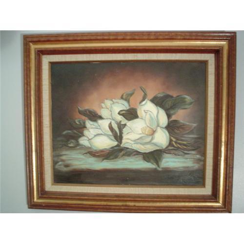 Jane Peterson 1876-1965 (American) Titled "Calla Lily". Signed en verso "Jane Peterson 49'". Very good condition & measures 16"x20". Purchased in Manhattan N.Y. Oil on canvas of a floral still life. Small amounts of in painting along bottom. Gold frame.