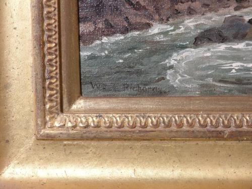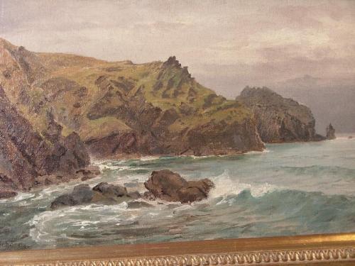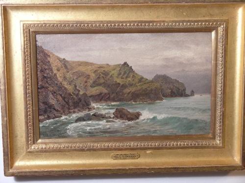 Richards, William Trost (Philadelphia 1833 - 1905). At Mullion Cove, oil on canvas in original gilt frame, /s/ l.l "Wm T Richards", 9" by 15".
