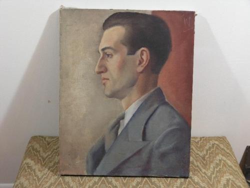 Sallee, Charles L. Jr. (Oberlin, OH 1913 - ? An important ). An important depiction of the American composer (Gerswhin Brooklyn, New York 1898 -1937) Oil on canvas, /s/ verso "Sallee", 19" by 15".