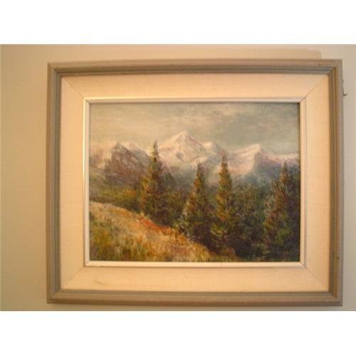 Robert W. Wood (1889-1979) Attributed. Excellent painting of snow covered mountains very similar to R.W.Wood. Oil on canvas & measures 10"x13". Very small touch up bottom right (1/8").