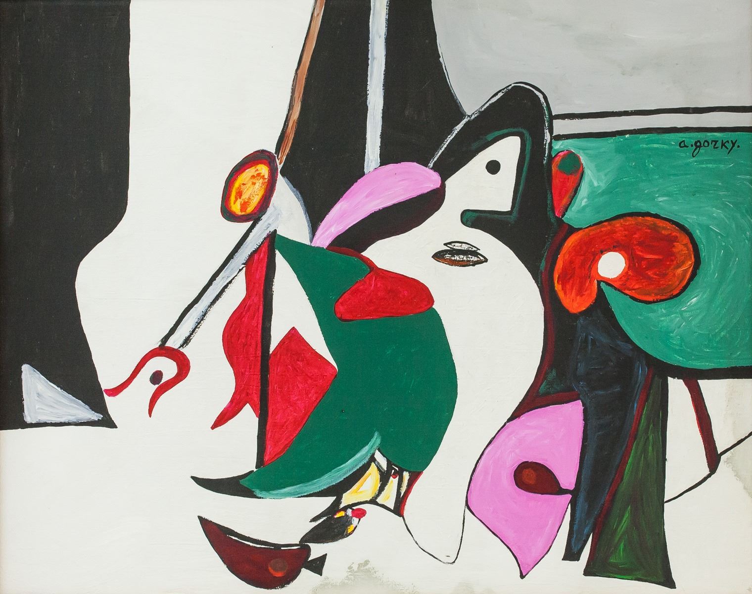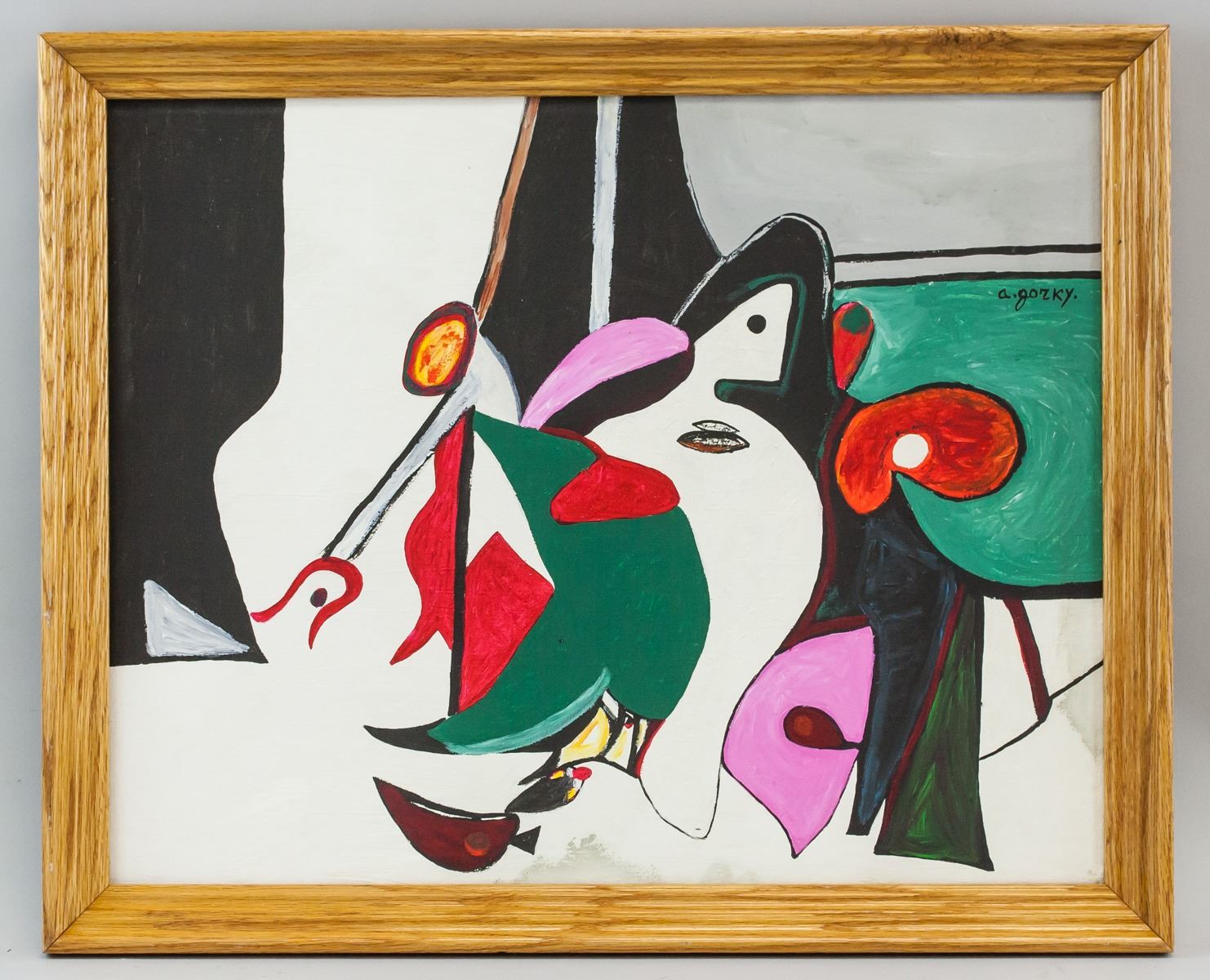 Oil on canvas, framed. Featuring an abstract portrait composition. Signed a. gorky on the upper right corner. 41 x 51 cm (16 x 20 in), Frame: 47 x 57 cm (18 x 22 in). Provenance: This lot carries limited provenance from a Southern Ontario estate