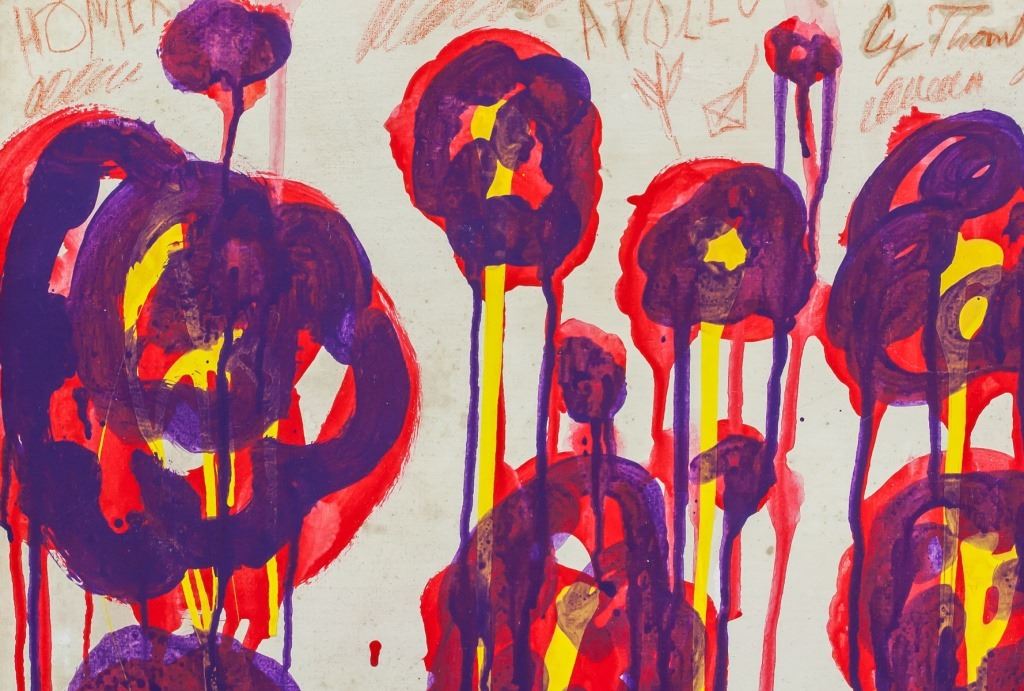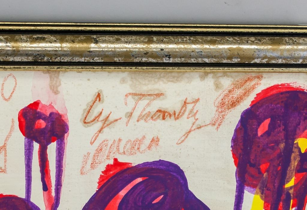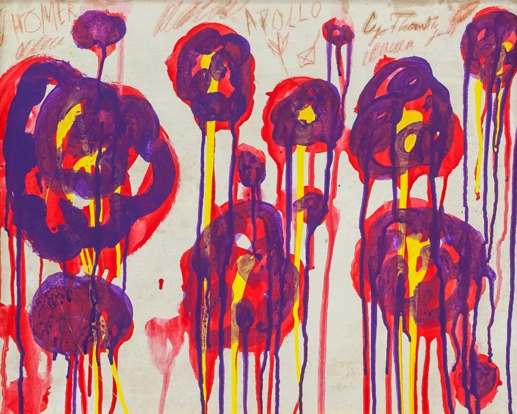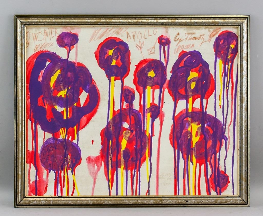 Oil on canvas, framed. Featuring an abstract expressionist composition. Signed Cy Twombly near the top edge. 40 x 50 cm (15.75 x 20 inches). Framed size: 45 x 55.5 cm (17.75 x 21.75 inches). Provenance: This lot carries limited provenance from a Southern Ontario estate