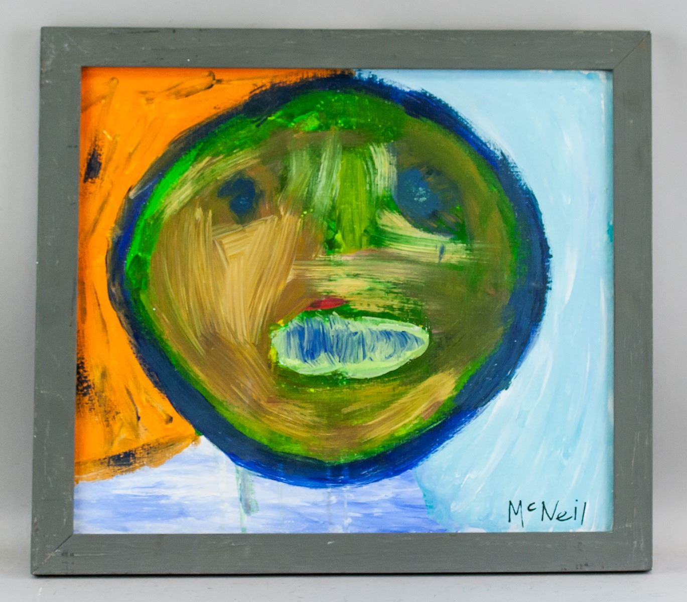 Oil on canvas, stretched and framed. Featuring a portrait of a face. Signed McNeil on the lower right corner. 39 x 44 cm (15.4 x 17.3 inches). Frame size: 45 x 50 cm (17.7 x 19.7 inches). PROVENANCE: Southern Ontario estate
