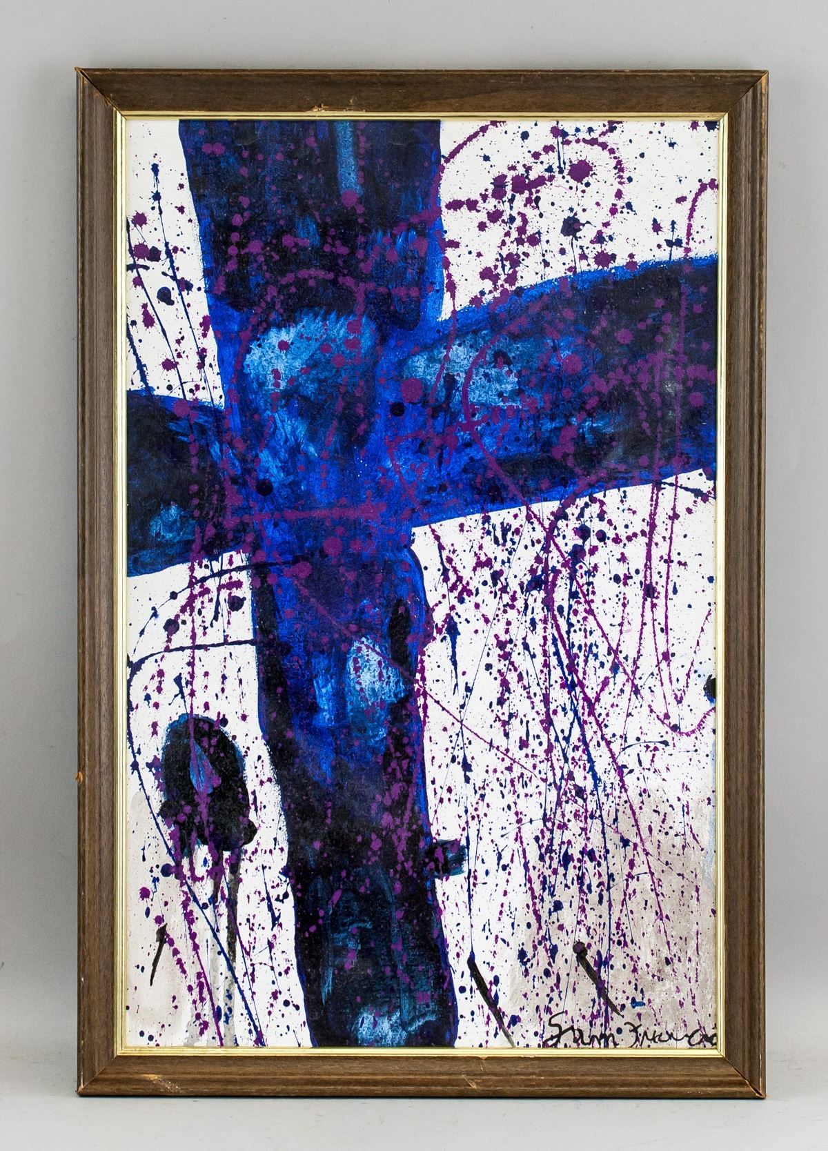 Oil on canvas, stretched and framed. Featuring an abstract expressionist composition. Signed Sam Francis on the lower right corner. 55 x 35.5 cm (21.7 x 14.0 inches). Frame size: 60 x 40.5 cm (23.6 x 16.0 inches). Provenance: This lot carries limited provenance from a Southern Ontario estate