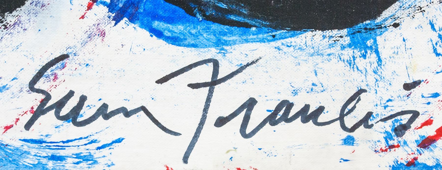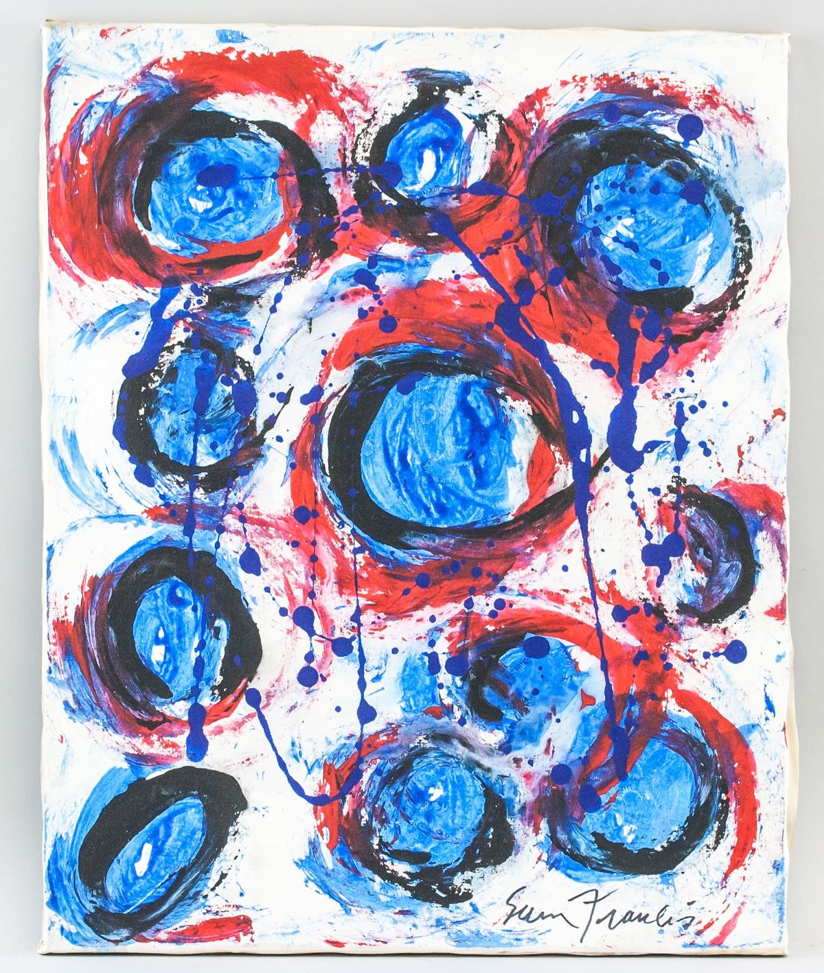 Oil on canvas. Featuring an abstract expressionist composition. Signed Sam Francis on the lower right corner. 52 x 42 cm (20.5 x 16.5 inches). Provenance: This lot carries limited provenance from a Southern Ontario estate