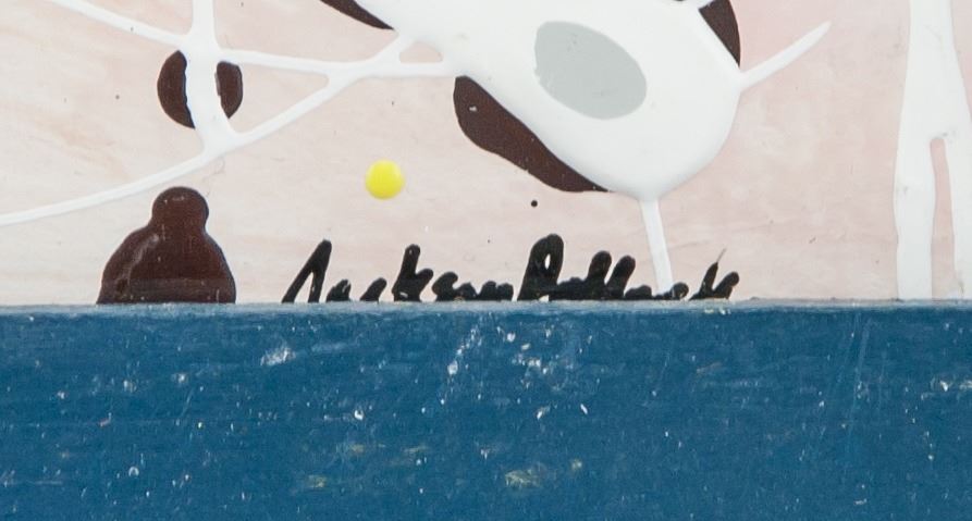Oil on paper, framed. Featuring an abstract expressionist composition. Signed on the lower margin. 20 x 28.5 cm (7.9 x 11.2 inches). PROVENANCE: Southern Ontario estate