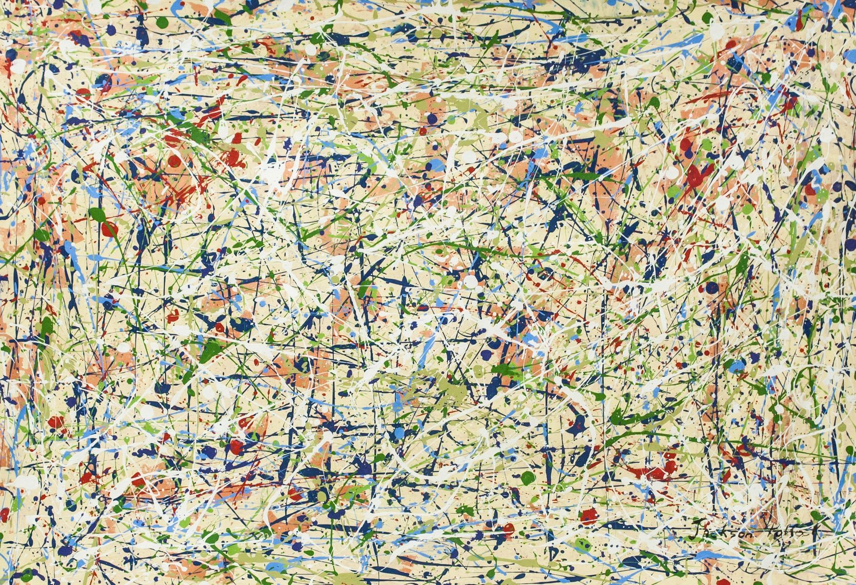 Acrylic on canvas. Featuring an abstract expressionist composition. Signed Jackson Pollock on the lower right corner. 114 x 164 cm (45 x 64.5 inches). Provenance: This lot carries limited provenance from a Toronto estate