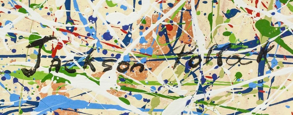 Acrylic on canvas. Featuring an abstract expressionist composition. Signed Jackson Pollock on the lower right corner. 114 x 164 cm (45 x 64.5 inches). Provenance: This lot carries limited provenance from a Toronto estate