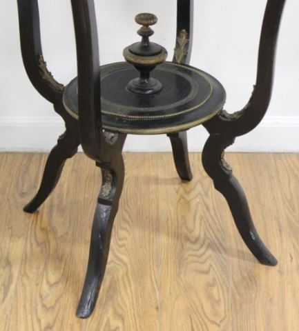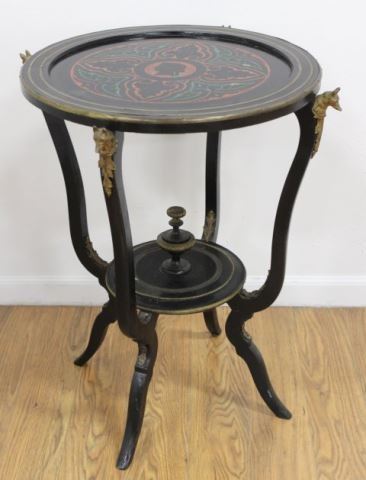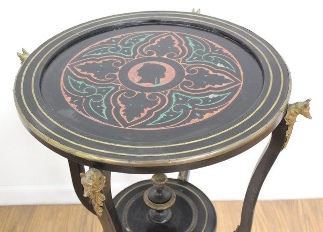 Scagliola marble top. Bronze mounts fox heads. Late 19th/early 20th century. Approx. 29" H x 21" diameter.