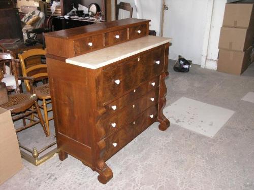 Early American pine chest with porcelain drawer pulls, 18 1/2" by 42 3/4" by 17 3/4"
