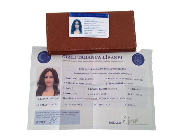Annika (Shiva Negar) screen used, hero, brown leather 'Longchamp' wallet with Driver's License. (approx. 7 1/2" x 3 1/2")