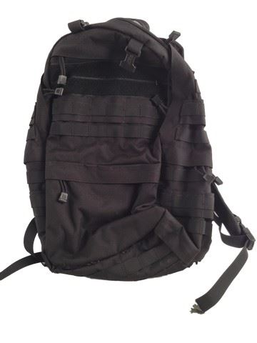 Ghost ( Taylor Kitsch) screen worn, hero, black "Flyte" back pack with a cushioned back for carrying heavy gear.(20x16)