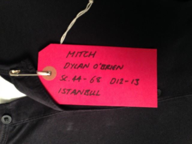 Mitch Rapp (Dylan O'Brien) screen worn, hero, black zipper up the front with vertical zippers on the arms and rubbed collar 'Gap' bomber jacket, black jersey knit long sleeve 4 button 'Bershka' henley top, (size S) and medium blue denim stone wash 'Tiger of Sweden' jeans. Includes wardrobe tag.