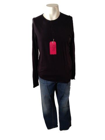 Mitch Rapp (Dylan O'Brien) screen worn, hero, black jersey knit long sleeve 4 button 'Bershka' henley top, (size S) and medium blue denim stone wash 'Tiger of Sweden' jeans. (size 38) Includes wardrobe tag.