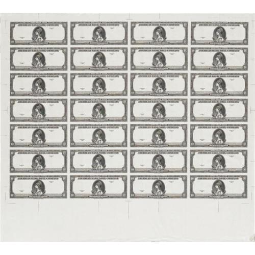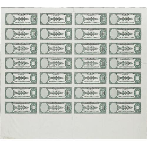 <B>American Bank Note Company Specimen $10 Series 1929 Uncut Sheet.</B></I><BR> This is a $10 denominated 28-subject uncut sheet printed by the ABNCo as Series of 1929, though it was printed in the 1980s, as the security thread in the notes will attest to. This is the first time we have been able to offer these notes in full uncut sheet form. <B>Crisp Uncirculated.</B></I><BR><BR><b>Shipping:</b> Coins & Currency (<a target="_blank" href="http://www.heritageauctions.com/common/shipping.php">view shipping information</a>)