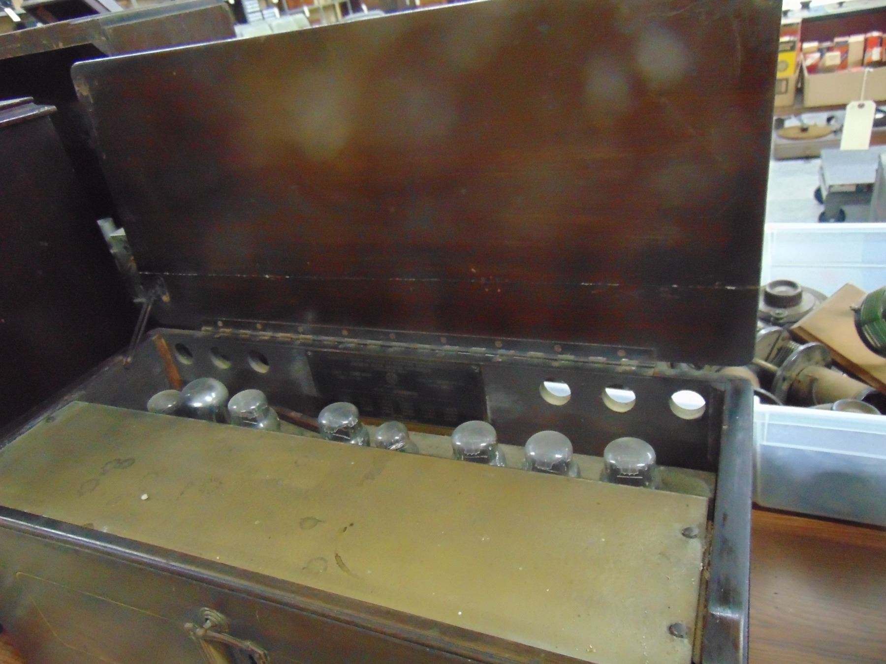 Early electric table radio; includes tubes; model 28