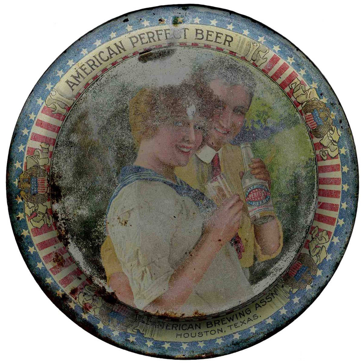 Pre-Prohibition American Brewing Association Metal Tip Tray -- Features Couple Enjoying an ''American Perfect Beer'' -- Fading -- Very Good